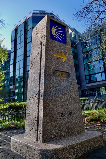 A new milestone that marks the start of the Reading section of a well-trodden pilgrimage trail to Southampton and to the North of Spain has been unveiled.