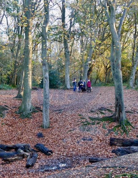 Walkers out in the woods at first light., Credit:Geoffrey Swaine / Avalon