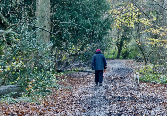 Walkers out in the woods at first light., Credit:Geoffrey Swaine / Avalon
