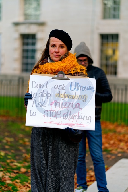 Sunday, 23 November 2025, Downing Street, London. Emergency Rally- Stand With Ukraine.The speakers put the case forward that there should be no peace deal without guaranties for territorial integrity, the right of Ukraine to defend itself and justice for all war crimes and payment for damages to Ukraine., Credit:Aldo Ciarrocchi / Avalon