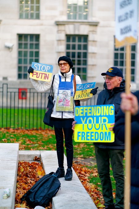 Sunday, 23 November 2025, Downing Street, London. Emergency Rally- Stand With Ukraine.The speakers put the case forward that there should be no peace deal without guaranties for territorial integrity, the right of Ukraine to defend itself and justice for all war crimes and payment for damages to Ukraine., Credit:Aldo Ciarrocchi / Avalon
