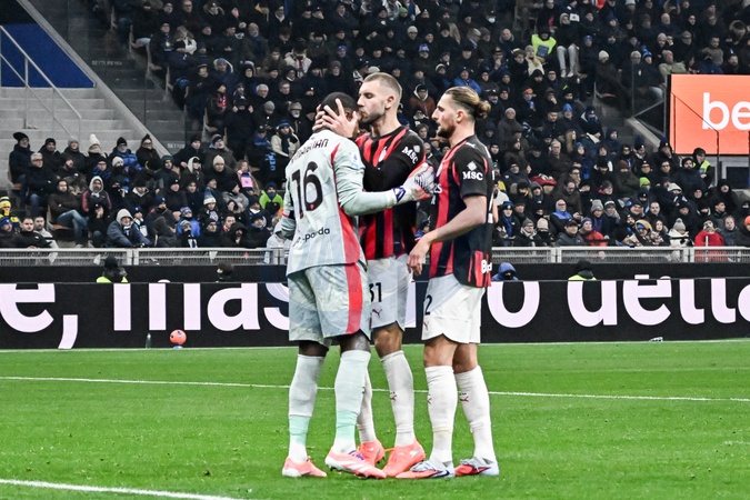 San Siro Stadium, Matchday 12 of the Serie A ENILIVE Championship. Inter vs. Milan. Penalty for Inter, shot by Hakan Calhanoglu and saved by Mike Maignan. Milan, Italy 23 November 2025, Credit:Nicola Marfisi / Avalon