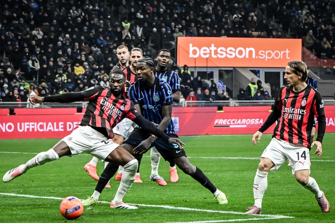 San Siro Stadium, Matchday 12 of the Serie A Championship. ENILIVE. Inter vs. Milan. Fikayo Tomori on Marcus Thuram. Milan, Italy 23 November 2025, Credit:Nicola Marfisi / Avalon