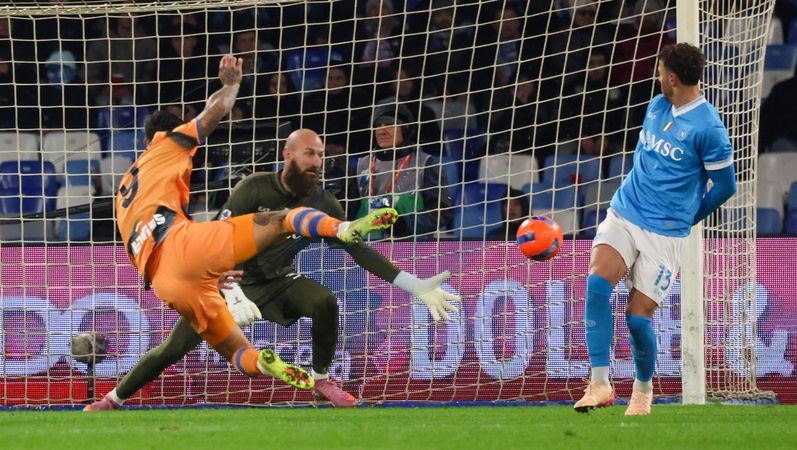 Diego Armando Maradona Stadium. Serie A, SSC Napoli vs. Atalanta. Pictured: Goal by Atalanta's Gianluca Scamacca. Naples, Italy 22 November 2025, Credit:Fabio Sasso / Avalon