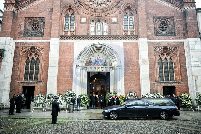 Cristiano Ardenzi, nephews Matteo , Camilla pictured during Ornella Vanoni's funeral in Milan Nov 24th 2025, Credit:Nicola Marfisi/AGF / Avalon