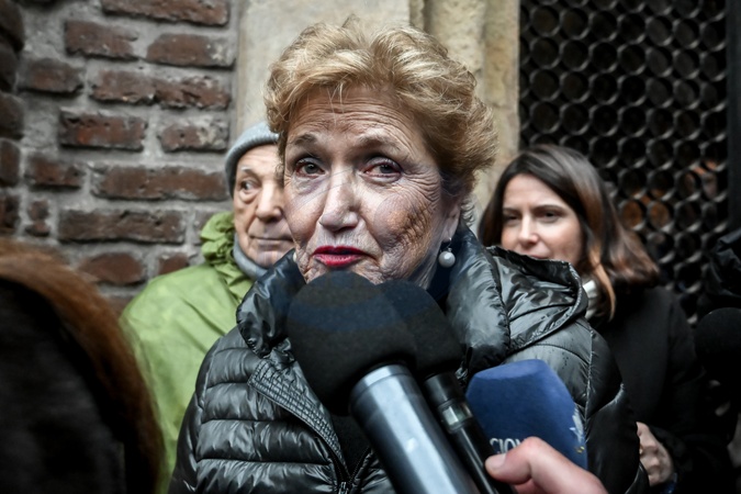 Mara Maionchi pictured during Ornella Vanoni's funeral in Milan Nov 24th 2025, Credit:Nicola Marfisi/AGF / Avalon