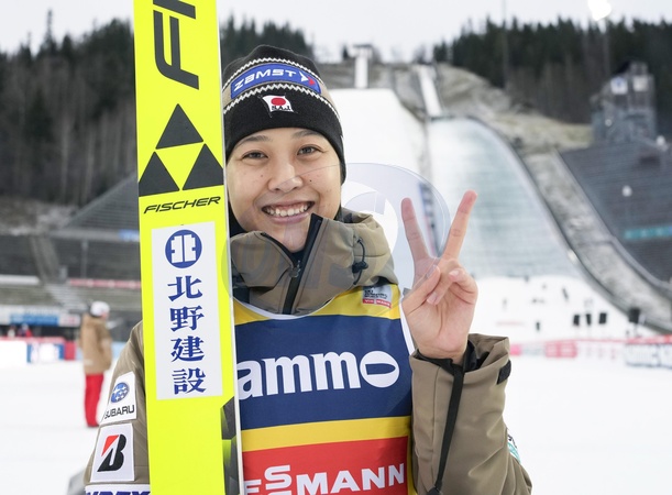 Nozomi Maruyama of Japan poses after winning gold in the women's World Cup ski jumping event in Lillehammer, Norway, on Nov. 23, 2025., Credit:Kyodo/Newscom / Avalon