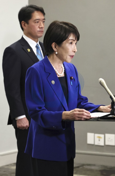 Japanese Prime Minister Sanae Takaichi meets the press following the conclusion of a Group of 20 summit in Johannesburg on Nov. 23, 2025., Credit:Kyodo/Newscom / Avalon