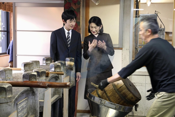 Japanese Crown Princess Kiko and her son Prince Hisahito visit a camellia oil refinery on Izu Oshima Island, south of Tokyo, on Nov. 22, 2025., Credit:Kyodo/Newscom / Avalon