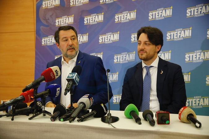 24/11/2025 Padua, the center-right candidate wins the regional elections in Veneto, pictured are Minister Matteo Salvini and the new President of the Region Alberto Stefani., Credit:Mirco Toniolo/AGF / Avalon