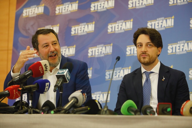 24/11/2025 Padua, the center-right candidate wins the regional elections in Veneto, pictured are Minister Matteo Salvini and the new President of the Region Alberto Stefani., Credit:Mirco Toniolo/AGF / Avalon