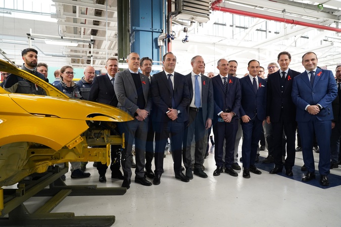 Presentation of the new Fiat 500 hybrid. Pictured are some of the institutional figures present, including Adolfo Urso, Minister of Enterprise and Made in Italy, John Elkann, Chairman of the Stellantis Board of Directors, and the new CEO, Antonio Filosa. Turin, Nov 25th 2025, Credit:/AGF / Avalon