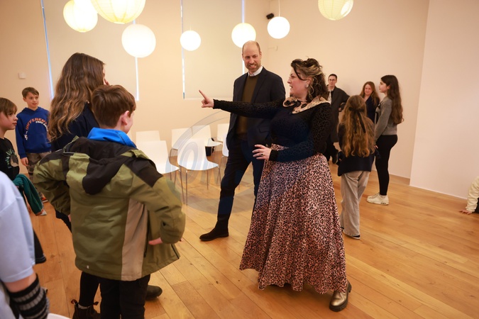 William Prince of Wales attends a comedy workshop , run by Welsh comedianKiri Pritchard-McLean who is co-founder of a comedy school in North Wales called Gwneud, The school was created to open doors for people across the region, in order to allow them to developtheir comedic talents and open up more arts opportunities for young people particularly those living inisolated rural locations and those from low-income backgrounds., Credit:Ian Vogler / Avalon