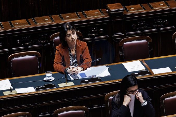 Chamber of Deputies, vote on the bill on the crime of femicide, to combat violence against women and protect victims. Pictured is Eugenia Roccella, Minister for Family, Birth Rate, and Equal Opportunities. Rome, Italy 25 November 2025, Credit:Francesco Fotia / Avalon