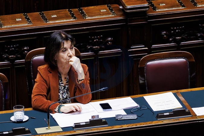Chamber of Deputies, vote on the bill on the crime of femicide, to combat violence against women and protect victims. Pictured is Eugenia Roccella, Minister for Family, Birth Rate, and Equal Opportunities. Rome, Italy 25 November 2025, Credit:Francesco Fotia / Avalon