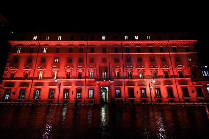 Palazzo Chigi was illuminated in red to mark the International Day for the Elimination of Violence against Women.