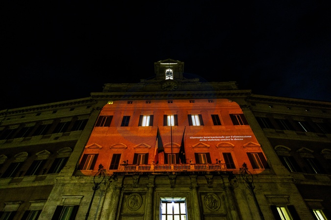 Montecitorio illuminated in orange to mark the International Day for the Elimination of Violence against Women.