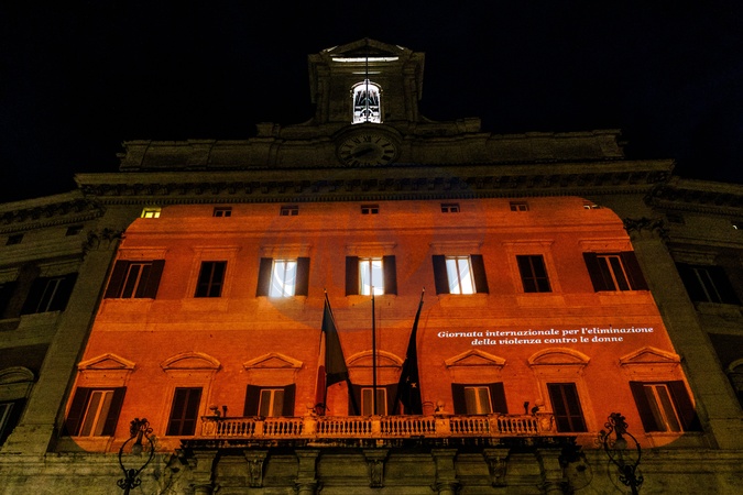 Montecitorio illuminated in orange to mark the International Day for the Elimination of Violence against Women.