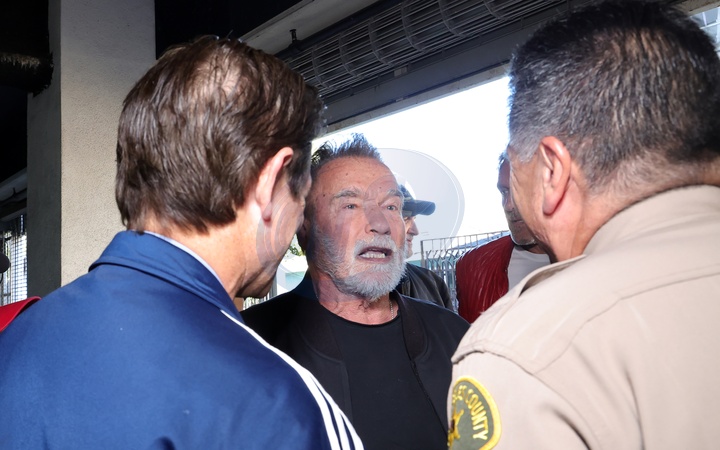 25 November 2025 . Los Angeles, California - Governor Arnold Schwarzenegger, Sheriff Robert G. Luna, Nathan Hochman At 44th Annual Miracle on 1st Street Turkey Giveaway! held at The Hollenbeck Youth Center in Los Angeles., Credit:Sadou Faye / Avalon