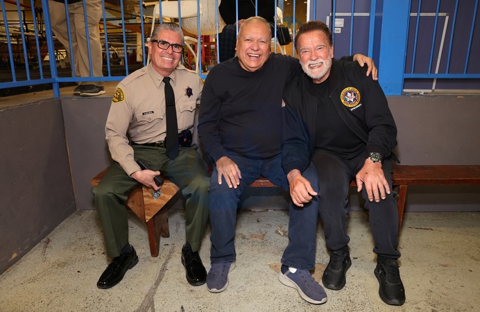 25 November 2025 . Los Angeles, California - Oscar O Barragan, Danny Hernandez, Governor Arnold Schwarzenegger At 44th Annual Miracle on 1st Street Turkey Giveaway! held at The Hollenbeck Youth Center in Los Angeles., Credit:Sadou Faye / Avalon
