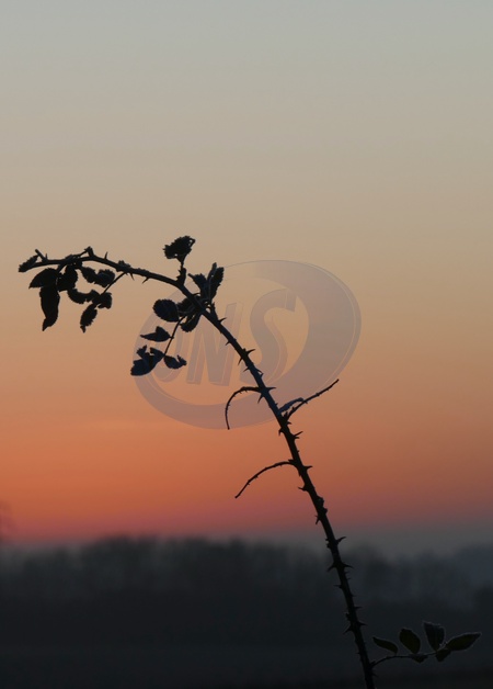 The days sun rises on a cold and frosty morning in the countryside., Credit:Geoffrey Swaine / Avalon