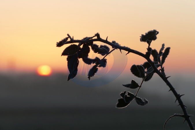 The days sun rises on a cold and frosty morning in the countryside., Credit:Geoffrey Swaine / Avalon