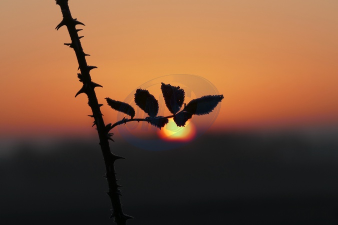 The days sun rises on a cold and frosty morning in the countryside., Credit:Geoffrey Swaine / Avalon