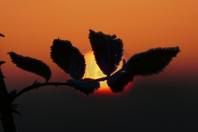 The days sun rises on a cold and frosty morning in the countryside., Credit:Geoffrey Swaine / Avalon