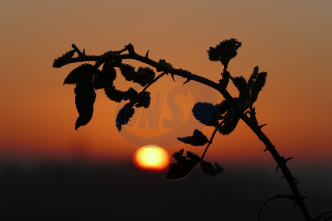The days sun rises on a cold and frosty morning in the countryside., Credit:Geoffrey Swaine / Avalon