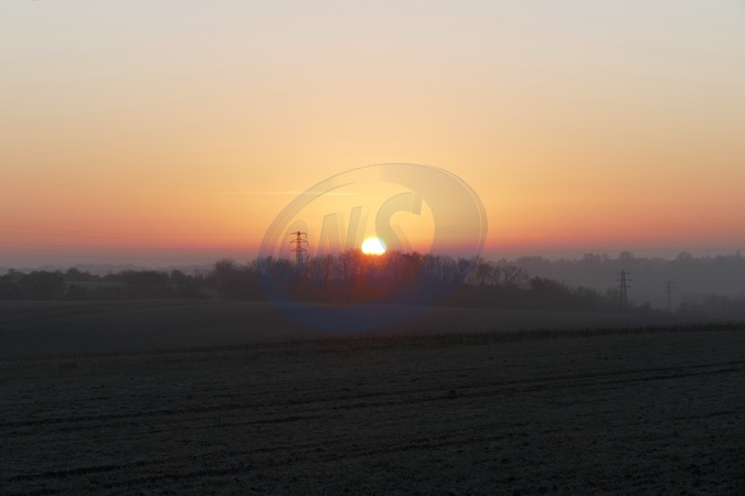 The days sun rises on a cold and frosty morning in the countryside., Credit:Geoffrey Swaine / Avalon