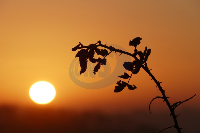 The days sun rises on a cold and frosty morning in the countryside., Credit:Geoffrey Swaine / Avalon