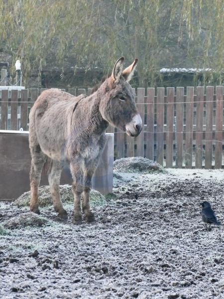 Donkeys in a paddock and a cold and frosty morning at dawn., Credit:Geoffrey Swaine / Avalon