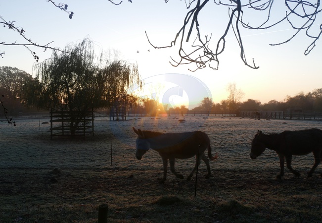 Donkeys in a paddock and a cold and frosty morning at dawn., Credit:Geoffrey Swaine / Avalon