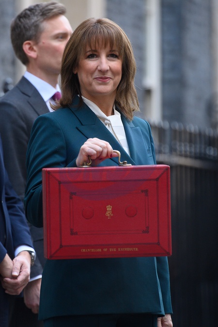 Rachel Reeves - Chancellor of The Exchequer holds up the red box as she departs 11 Downing Street in London, England, UK on Wednesday 26 November, 2025 to deliver her Autumn Budget 2025., Credit:Justin Ng / Avalon