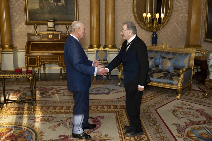 King Charles III during an audience with Mr George Szirtes, who was presented with The King's Gold Medal for Poetry for 2024 at Buckingham Palace, London. Picture date: Wednesday November 26, 2025., Credit:Jordan Pettitt / Avalon