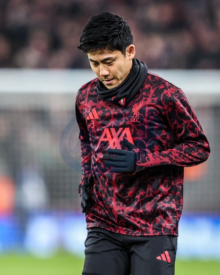 Wataru Endo of Liverpool in the pregame warmup session during the UEFA Champions League Matchday 5 of 8 Liverpool vs PSV Eindhoven at Anfield, Liverpool, United Kingdom, 26th November 2025, Credit:Ae Cosgrove/News Images / Avalon