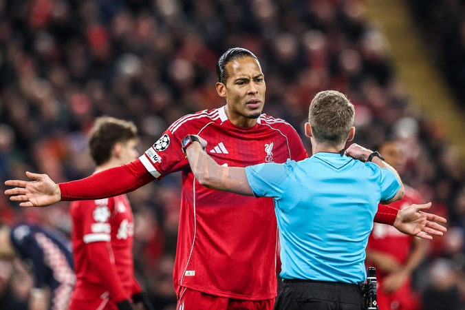 Virgil van Dijk of Liverpool appeals to referee Alejandro Jose Hernandez after he gives a penalty to PSV during the UEFA Champions League Matchday 5 of 8 Liverpool vs PSV Eindhoven at Anfield, Liverpool, United Kingdom, 26th November 2025, Credit:Ae Cosgrove/News Images / Avalon