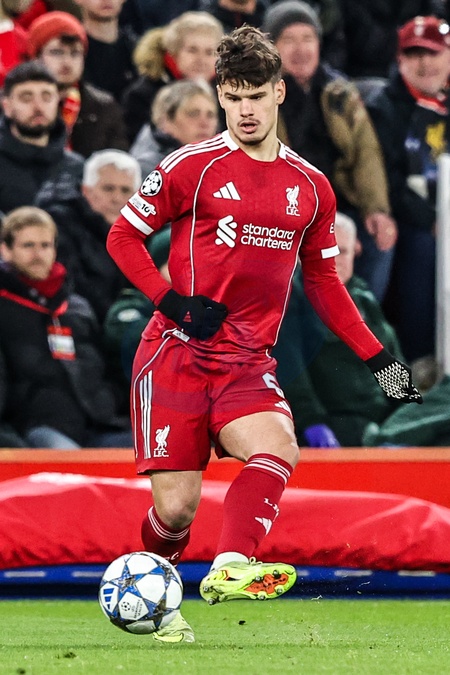 Milos Kerkez of Liverpool during the UEFA Champions League Matchday 5 of 8 Liverpool vs PSV Eindhoven at Anfield, Liverpool, United Kingdom, 26th November 2025, Credit:Ae Cosgrove/News Images / Avalon