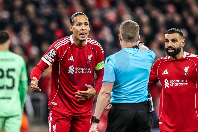 Virgil van Dijk of Liverpool appeals to referee Alejandro Jose Hernandez during the UEFA Champions League Matchday 5 of 8 Liverpool vs PSV Eindhoven at Anfield, Liverpool, United Kingdom, 26th November 2025, Credit:Ae Cosgrove/News Images / Avalon