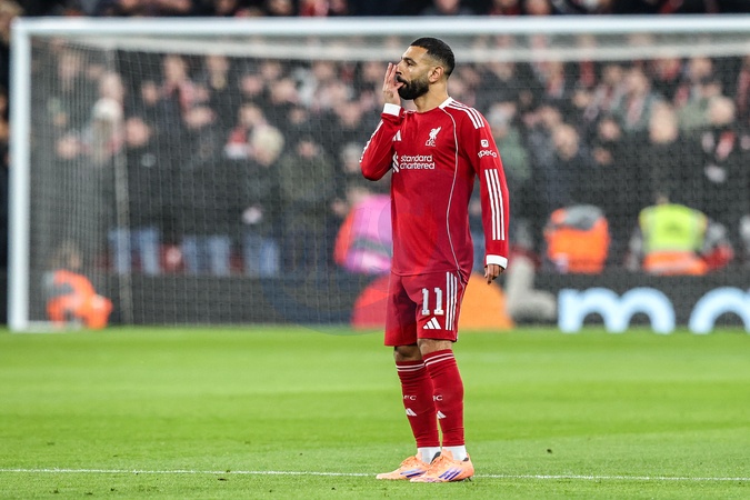 Mohamed Salah of Liverpool gives his team instructions during the UEFA Champions League Matchday 5 of 8 Liverpool vs PSV Eindhoven at Anfield, Liverpool, United Kingdom, 26th November 2025, Credit:Ae Cosgrove/News Images / Avalon