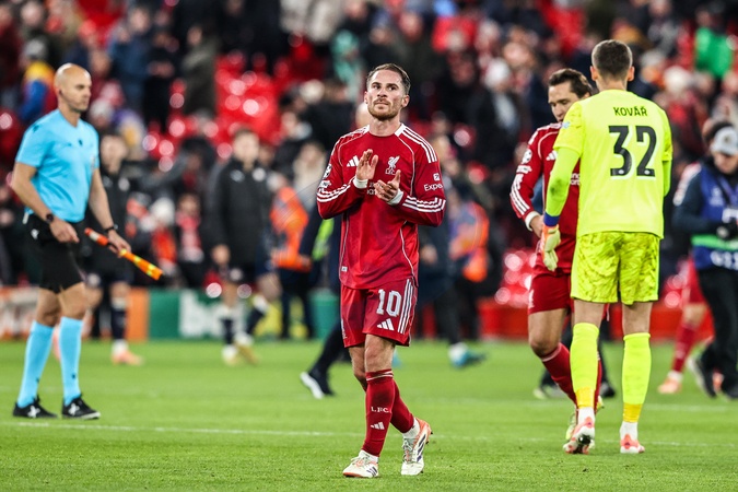 Alexis Mac Allister of Liverpool applauds the fans after the game during the UEFA Champions League Matchday 5 of 8 Liverpool vs PSV Eindhoven at Anfield, Liverpool, United Kingdom, 26th November 2025, Credit:Ae Cosgrove/News Images / Avalon