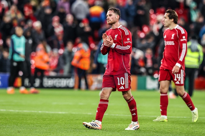 Alexis Mac Allister of Liverpool applauds the fans after the game during the UEFA Champions League Matchday 5 of 8 Liverpool vs PSV Eindhoven at Anfield, Liverpool, United Kingdom, 26th November 2025, Credit:Ae Cosgrove/News Images / Avalon