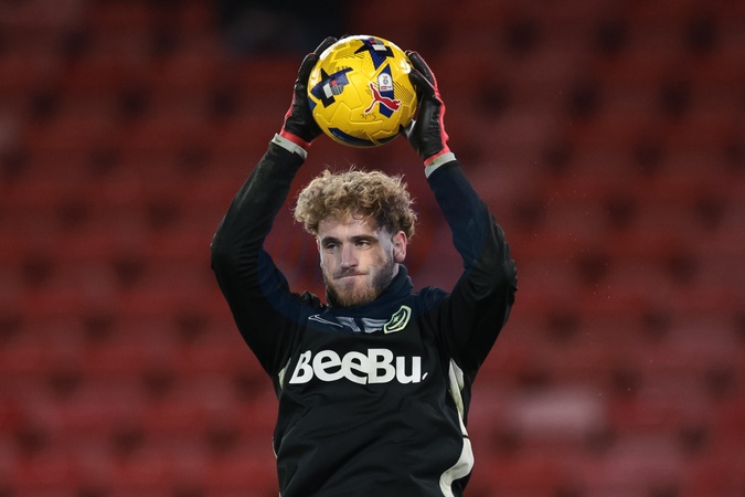 Portsmouth goalkeeper Nicolas Schmid in the pregame warmup session during the Sky Bet Championship match Sheffield United vs Portsmouth at Bramall Lane, Sheffield, United Kingdom, 26th November 2025, Credit:Mark Cosgrove/News Images / Avalon