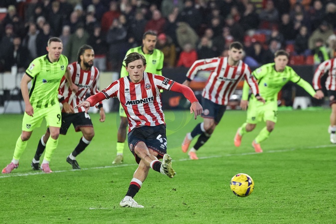 Sydie Peck of Sheffield United scores a penalty to make it 1-0 during the Sky Bet Championship match Sheffield United vs Portsmouth at Bramall Lane, Sheffield, United Kingdom, 26th November 2025, Credit:Mark Cosgrove/News Images / Avalon