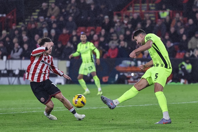 Regan Poole of Portsmouth clears the ball up field during the Sky Bet Championship match Sheffield United vs Portsmouth at Bramall Lane, Sheffield, United Kingdom, 26th November 2025, Credit:Mark Cosgrove/News Images / Avalon