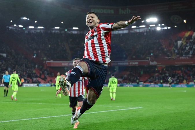 Gustavo Hamer of Sheffield United celebrates his goal to make it 3-0 during the Sky Bet Championship match Sheffield United vs Portsmouth at Bramall Lane, Sheffield, United Kingdom, 26th November 2025, Credit:Mark Cosgrove/News Images / Avalon