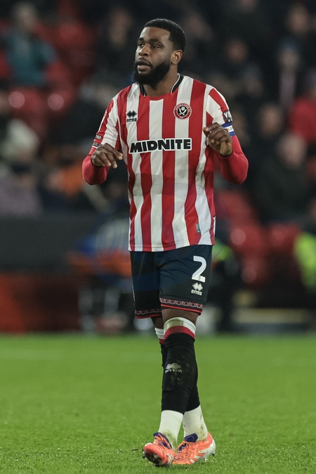 Japhet Tanganga of Sheffield United during the Sky Bet Championship match Sheffield United vs Portsmouth at Bramall Lane, Sheffield, United Kingdom, 26th November 2025, Credit:Mark Cosgrove/News Images / Avalon