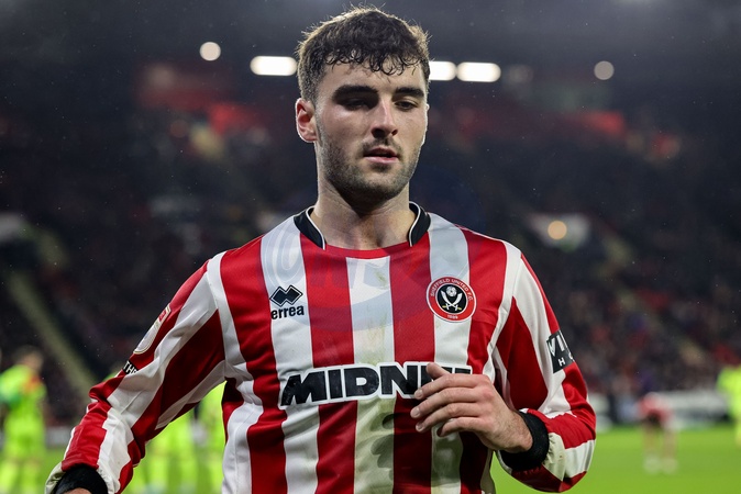 Tom Cannon of Sheffield United during the Sky Bet Championship match Sheffield United vs Portsmouth at Bramall Lane, Sheffield, United Kingdom, 26th November 2025, Credit:Mark Cosgrove/News Images / Avalon