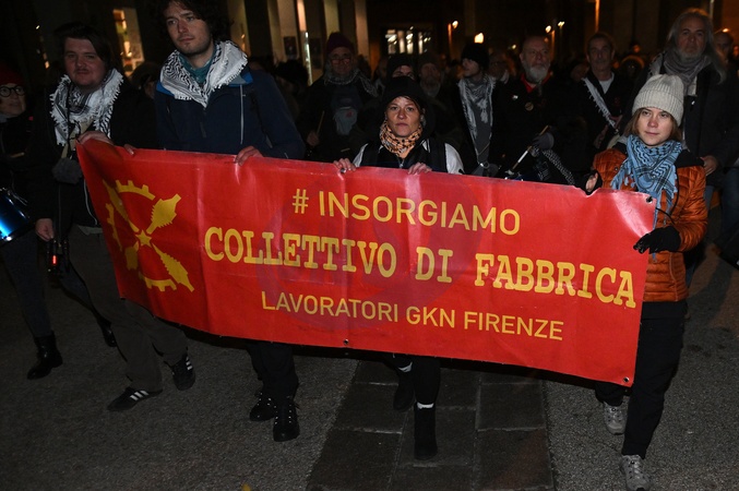 Greta Thunberg participates in an initiative by former GKN workers. Around a hundred people gathered at the university campus for the 16th "Scream for Gaza." Florence, November 26, 2025, Credit:Aleandro Biagianti/AGF / Avalon