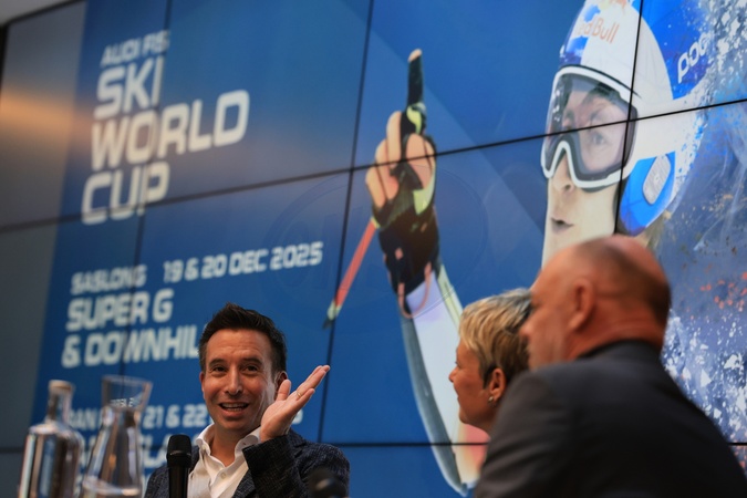 Audi FIS Ski World Cup, Presentation of the Alpine Skiing World Cup. The men's events in Val Gardena and Alta Badia are presented to the press ahead of the Mico26 Olympic season. Pictured is Andy Varallo. Bolzano, Nov 27th 2025, Credit:Pierre Teyssot/AGF / Avalon